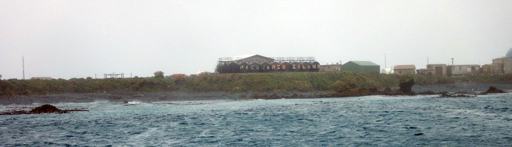 Clouds shred away just as the zodiacs pull in to take us back to the ship. Our time on Macquarie has ended as it began, in bright sunlight. Back on board I head up to the 600 level deck and watch the island recede into the haze. As we head north-east I get a view of the island as a whole, including the Judge and Clerk islets off the northern tip.