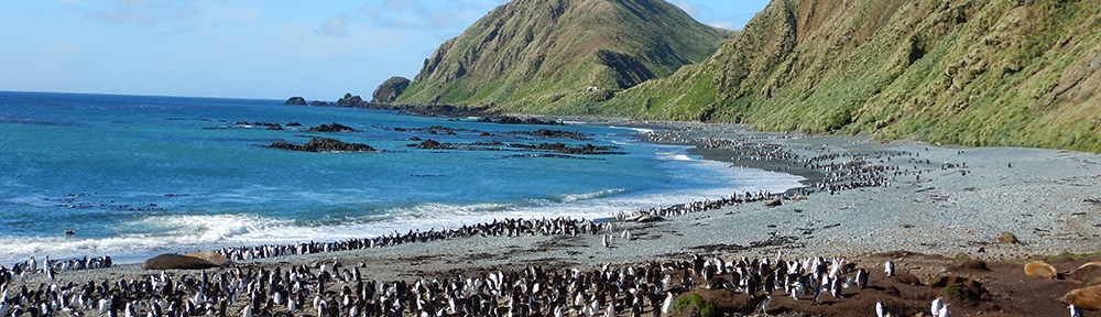 There’ll be 2 landings today – a chance to spend all day at Sandy Bay. Royal and King penguin colonies, Elephant seals, Giant Petrels. A wet landing. We’ll have a 600m stretch of beach to explore, and a boardwalk up to the Royal penguin colony. The Elephant seal crowd includes weaners and sub adults this time of year. Our area of beach is bordered by Finch creek to the south, and the Rangers will mark a northern boundary up near the King penguin colony.